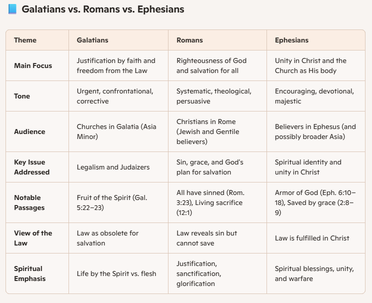 Explore how Galatians, Romans, and Ephesians each reveal a unique dimension of the Gospel—freedom, foundation, and fulfillment. This study will deepen your understanding of grace, faith, and your identity in Christ.