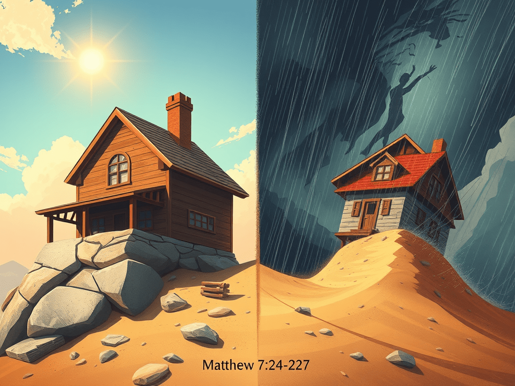 The parable in Matthew 7:24–27 highlights the importance of building one’s life on a solid foundation through obedience to Jesus’ teachings. It emphasizes that storms reveal the strength of our foundations, distinguishing between merely hearing His words and actively applying them. True spiritual maturity requires intentional choices aligned with Christ’s message.
